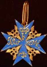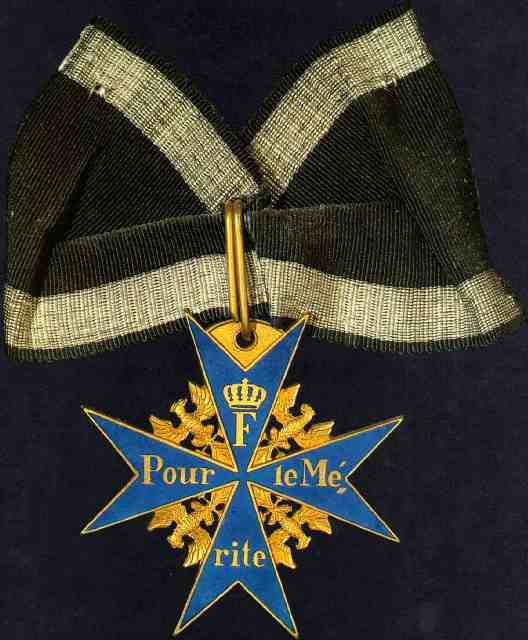 Zu Beginn war der preußische Orden Pour le mérite nicht die höchste militärische Tapferkeitsauszeichnung. Erst 1810 wurde ihm diese Ehre zu teil. Im Jahr 1685 stiftete König Friedrich I., als er noch Kurprinz war, einen Orden, den er Orden de la générosité nannte. Er bestand aus einem goldenem, achtspitziges Kreuz versehen mit goldenen Kugeln auf den Spitzen und mittig wurde das Wort Générosité angebracht. Das Kreuz selbst hing an einem blauen Bande. Am Tag der Thronbesteigung Friedrich der Große (31.05.1740) wurde er in den Orden Pour le mérite umbenannt. Alle Träger wurden in einer Ritterschaft vereint und erhielten einen monatlichen Ehrensold ausgezahlt.